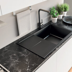 Σύνθεση Κουζίνας Vibrante, μια εκθαμβωτική κουζίνα με μαύρες έντονες λεπτομέρειες.